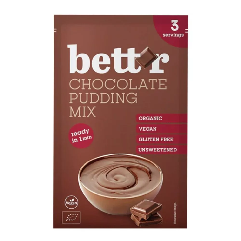 Készítsd el a tökéletes desszertet a Bett’r csokoládépuding keverékkel. Ezzel mindössze 1 perc alatt elnyerheted az egész család szeretetét! A csokoládépuding receptje néhány gondosan kiválasztott összetevőből áll, amelyek közül a legfontosabb a perui kakaó. Ezenkívül a csokoládépuding keverék nem tartalmaz glutént, tejtermékeket és mesterséges aromákat. Természetes összetétele miatt tökéletes kisgyermekek számára. A csokoládépuding keverék nem édesített, így Ön választhatja ki, milyen édesítőszert ad hozzá. Javaslataink között szerepel az agavészirup, a kókuszcukor, az eritritol, a muscovado cukor, a porított datolya és még sok más.
