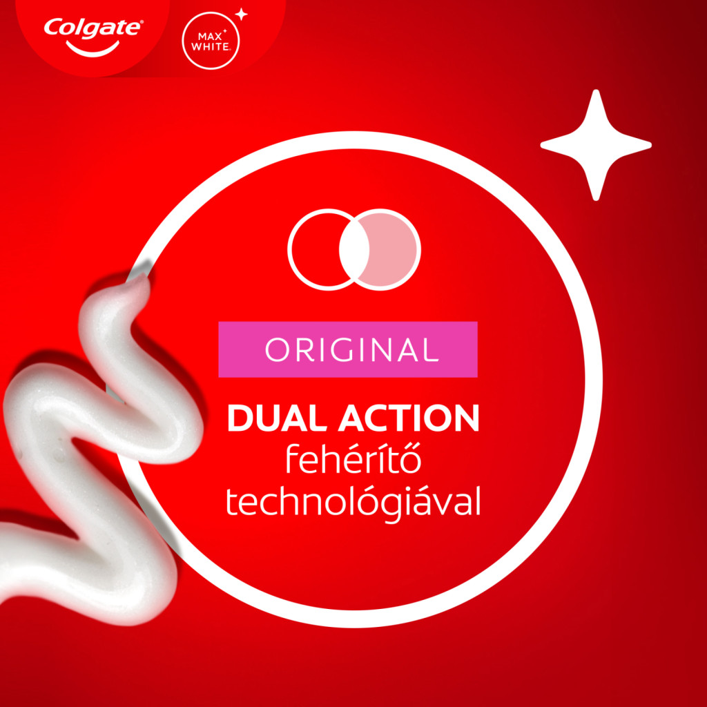 A Colgate Max White Expert Original fogfehérítő fogkrém professzionális fehérítő összetevőjével klinikailag igazoltan segít visszafordítani az évek során kialakult elszíneződéseket.*