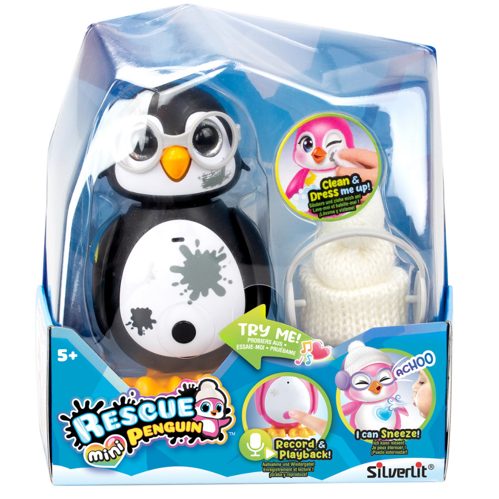 Talán nincs is olyan gyerek, aki ne álmodozott volna már arról, hogy megment egy imádnivaló állatot, és utána gondoskodik róla. A Silverlit interaktív Csupaszív mini pingvinje csak arra vár, hogy megmentsék, bebugyolálják, megetessék és persze megszeretgessék. A kis pingvinmentőknek nincs más dolguk, mint megnedvesíteni a dobozban található mágikus törlőkendőt, megtisztogatni a koszfoltos pingvin pajtit, ráadni a sálat, a sapit és a szemüveget, és a kis tityi-totyi máris boldog lesz.
