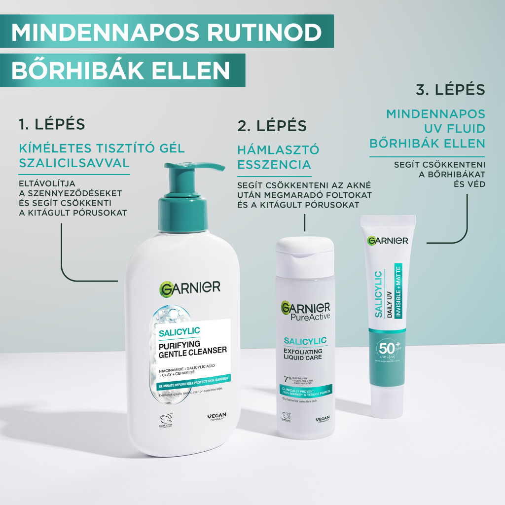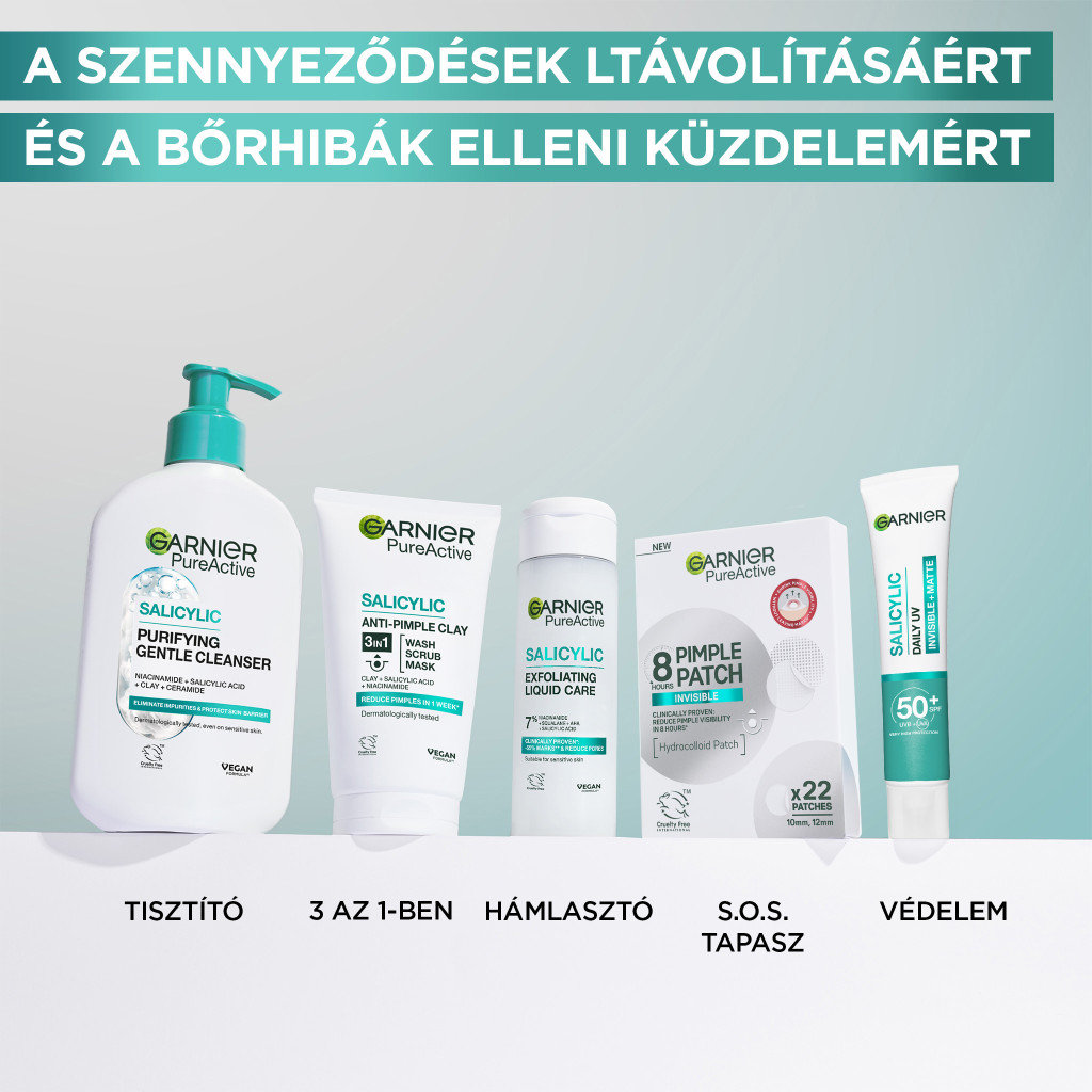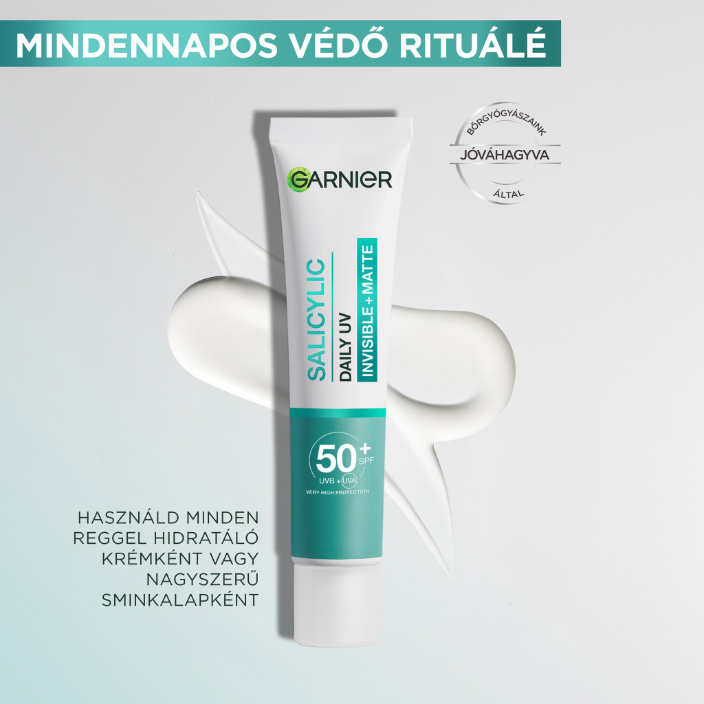 A BHA + NIACINAMID bőrhibák elleni ereje egy könnyű, mindennapos használatra szánt, matt fluidban NAGYON MAGAS SPF 50+ VÉDELEMMEL. Véd az UVB-, UVA- és hosszú hullámú UVA-sugárzás ellen. Csökkenti a bőrhibákat, mint a pattanások, az aknés foltok és a tág pórusok. Láthatatlan hatás minden bőrtónuson, fehér réteg nélkül. Nem ragad és nem zsíros.