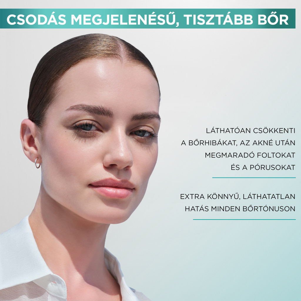 Nem komedogén és illatmentes. Bőrgyógyászati ellenőrzés mellett tesztelt & érzékeny bőrre is megfelelő. Véd az UVB-, UVA- és hosszú hullámú UVA-sugárzás ellen. Csökkenti a bőrhibákat, mint a pattanások, az aknés foltok és a tág pórusok. Amennyiben szembe kerül, azonnal öblítse ki bő vízzel.