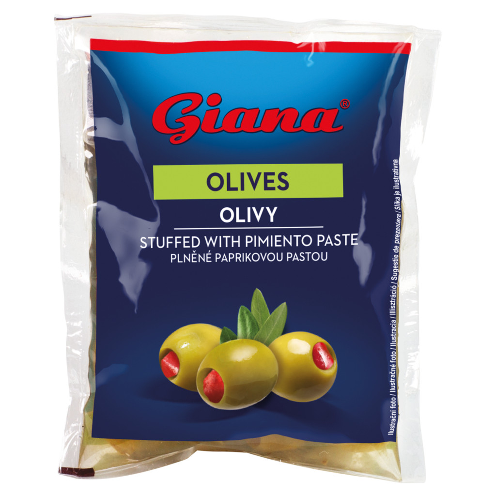 Ivóvíz, Olívabogyó 33%, Paprikakrém 8,2% (ivóvíz, paprika 1,39%, sűrítőanyagok: nátrium-alginát és guargumi, szilárdítóanyag: kalcium-klorid, étkezési só, savanyúságot szabályozó anyag: citromsav), Étkezési só 5%, Savanyúságot szabályozó anyag: tejsav és citromsav, Antioxidáns: aszkorbinsav