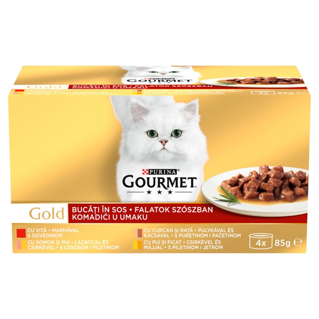 Marha: hús és állati származékok (25%, melyből marha 4%), gabonafélék, ásványi anyagok, különféle cukrok, Kacsa/pulyka: hús és állati származékok (26%, melyből pulyka 4%, kacsa 4%), gabonafélék, ásványi anyagok, különféle cukrok, Csirke/máj: hús és állati származékok (26%, melyből csirke 4%, máj 4%), gabonafélék, ásványi anyagok, különféle cukrok, Lazac/csirke: hús és állati származékok (21%, melyből csirke 4%), gabonafélék, hal és halszármazékok (lazac 4%), ásványi anyagok, különféle cukrok