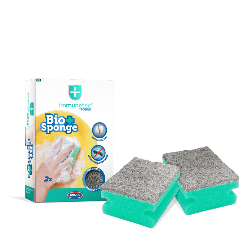 Baktérium, gomba és vírusmentes higiéné a takarítóeszközöd kémiai fertőtlenítése nélkül? Az Immunetec és BONUS közös fejlesztésével, az antimikrobiális Bioactive Sponge mosogatószivaccsal mindez valóra vált. Igazi különlegessége, hogy a gyártás során hozzáadott ezüst adalékanyagnak köszönhetően hatékonyan elpusztítja a szivacsba bejutó kórokozókat, melyet független laboratóriumi vizsgálatokkal is bizonyítottunk.