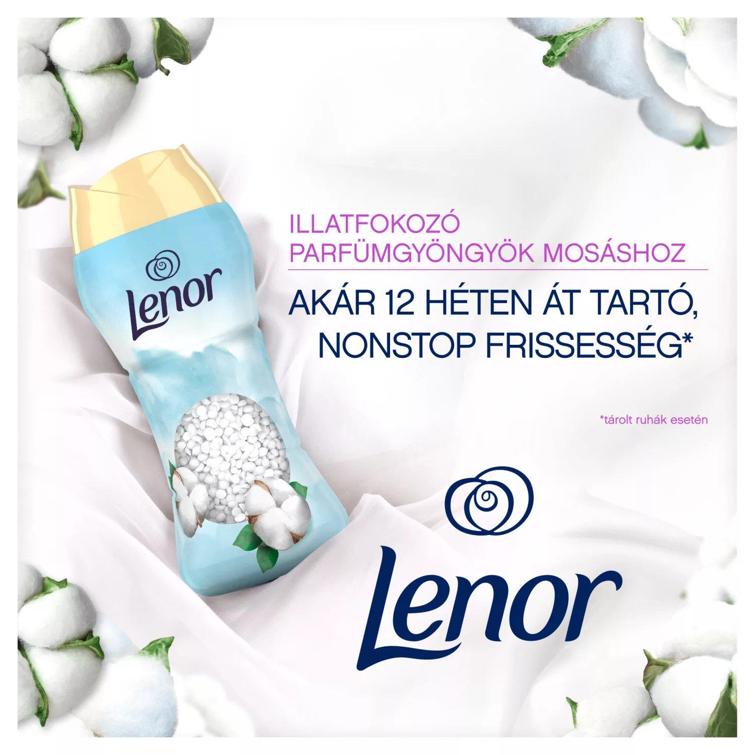 Adjon a mosáshoz Lenor Cotton Fresh illatfokozó parfümgyöngyöket, melyek gyengéd és hosszan tartó frissességgel járják át a ruhákat. A festékanyagoktól mentes illatfokozó parfümgyöngyök a pamut frissességének lágy, üde illatával járják át a mosott ruhákat. Használja együtt a Lenor Cotton Fresh textilöblítővel, mellyel tökéletes harmóniát alkotnak az ellenállhatatlan frissesség érdekében.