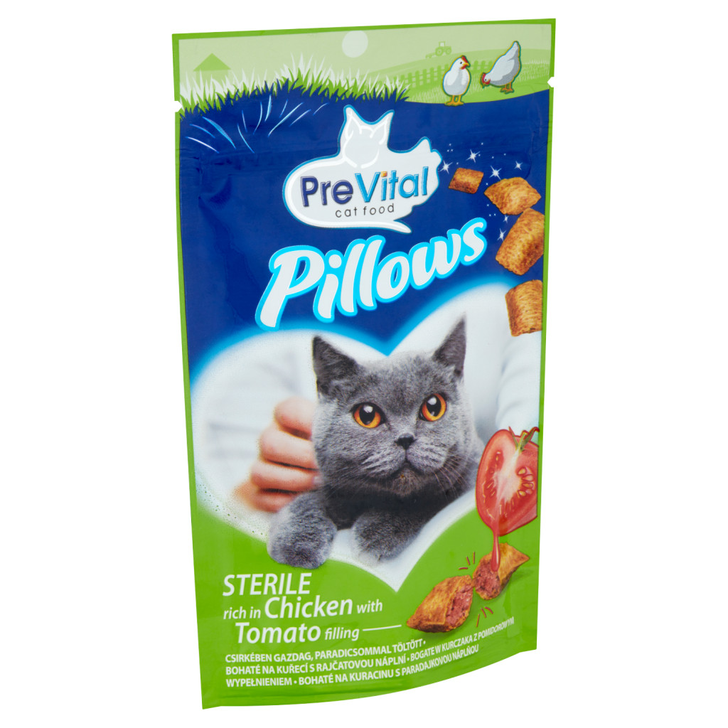 Ez a Pillow macska jutalomfalat 12 vitamint, valamint taurint tartalmaz, amely támogatja a látást és az egészséges szívműködést. Ez a macskaeledel csirkében gazdag, paradicsommal töltve, valamint ápolja a cicád fogait.